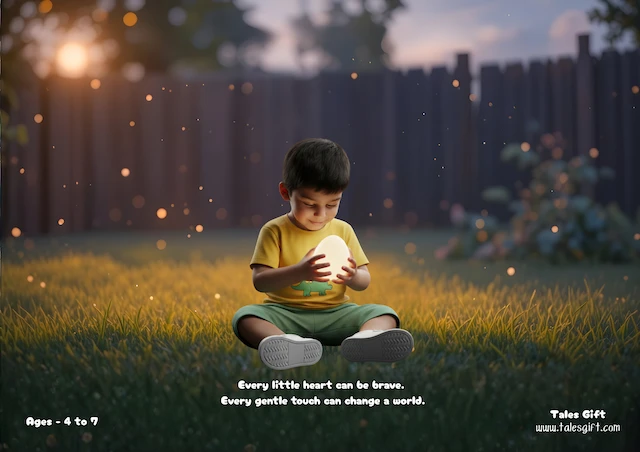 Little kid discovers a glowing portal in his backyard that gently carries him to the magical Dinosaur Kingdom. There, he befriends a baby dinosaur and soon meets many friendly giants. When the kingdom’s magical egg begins to lose its light, the dinosaurs turn to the kid for help. With a warm, loving hug, he restores the egg’s glow, bringing life and joy back to the land. The dinosaurs celebrate him as their tiniest hero. After heartfelt goodbyes, the kid returns home, where a faint shimmer on his toy dinosaur reminds him that a bit of the kingdom’s magic stayed with him forever.