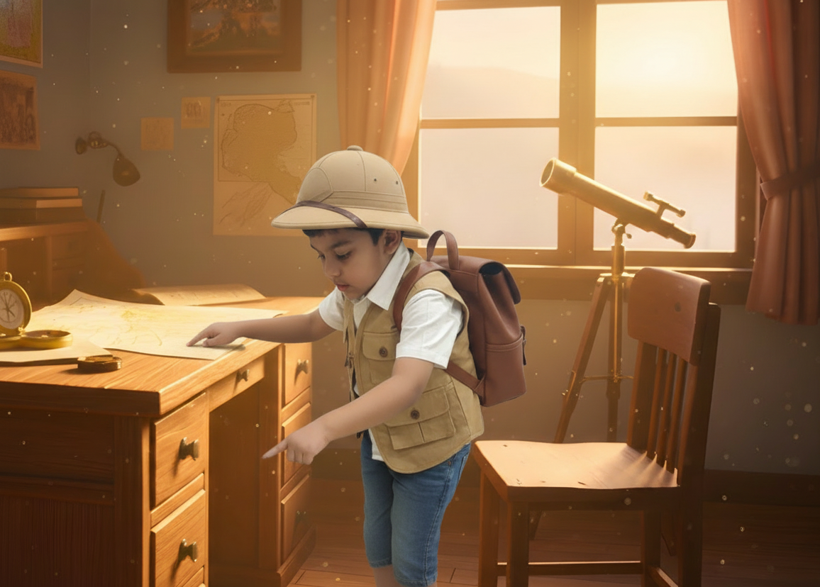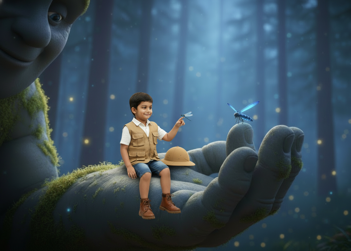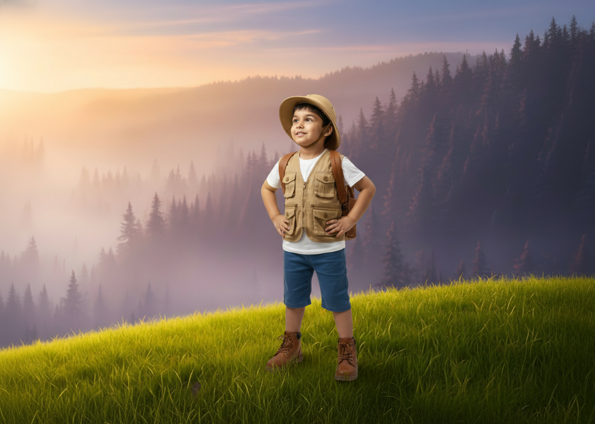 Brave little explorer ventures into Misty Valley, discovering Rumble, a gentle stone giant who is feared but lonely. By sharing lunch and leading him to her village, the explorer builds a bridge of friendship. When Rumble saves a home during a storm, the villagers realize kindness transcends size, welcoming their giant protector.